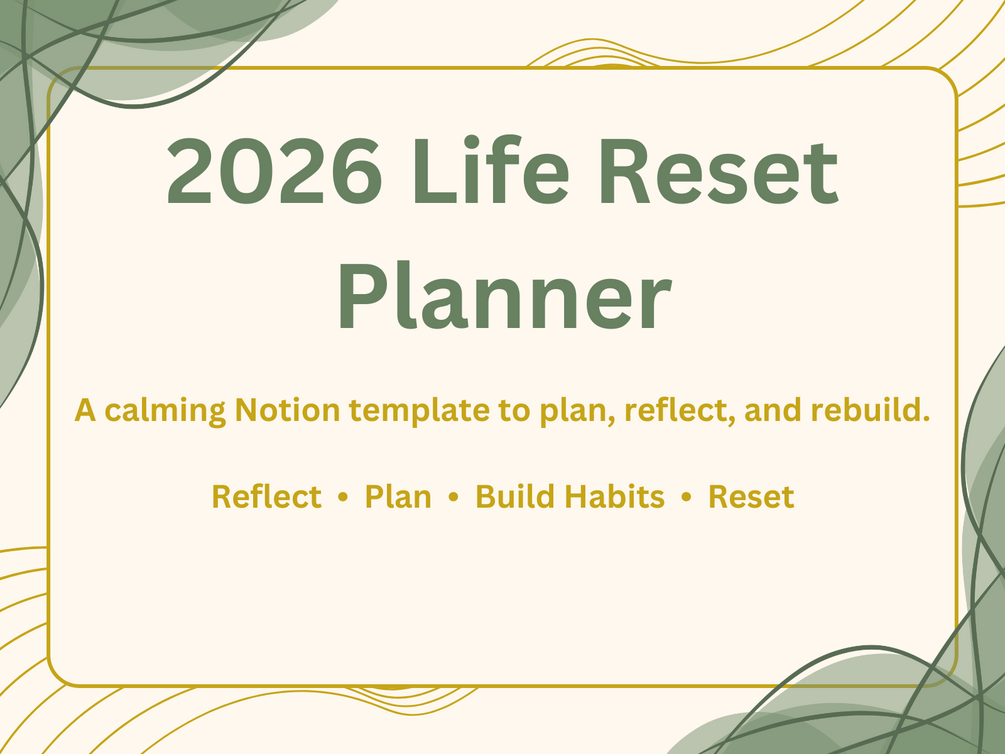 The 2026 Life Reset Planner is a calming Notion workspace that helps you slow down, set goals that matter, and rebuild your daily rhythm without pressure to be perfect.